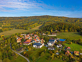und mit freiem Blick auf die Schwarzen Berge und den Kreuzberg. Sehr ruhige Lage.