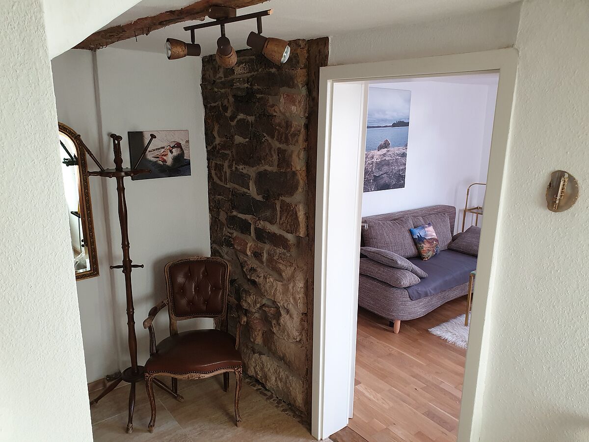 - Das Wohnzimmer besitzt eine ausziehbare Schlafcouch (130 x 190cm Liegefläche), SAT-TV und einen Kaminofen.