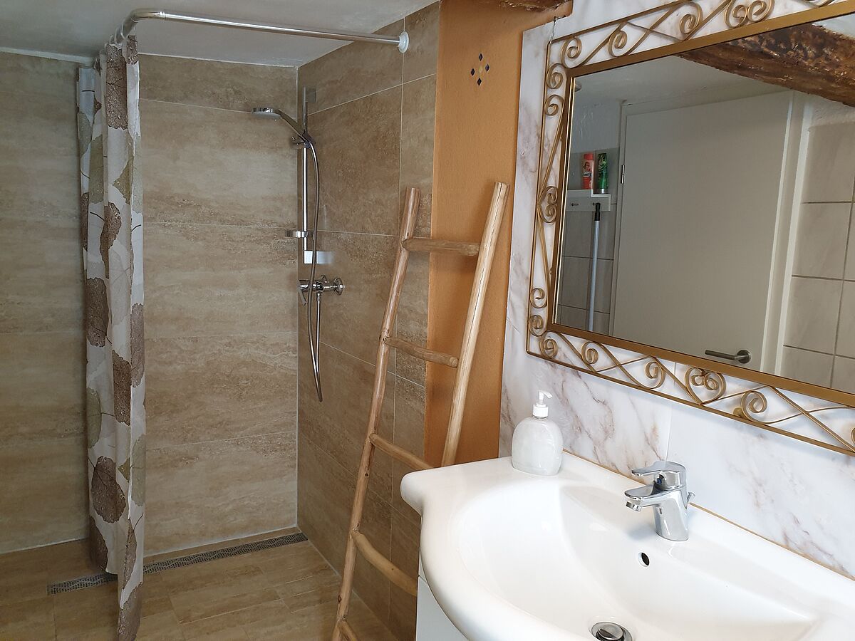 - Im Badezimmer im EG findet der Gast eine Wanne, eine Dusche und ein WC. Badtetücher und Handtücher inklusive.