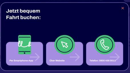 Es ist super simpel und bequem. Einfach über die App, die Website oder per Telefon unter der 0800 456 00 11 buchen.